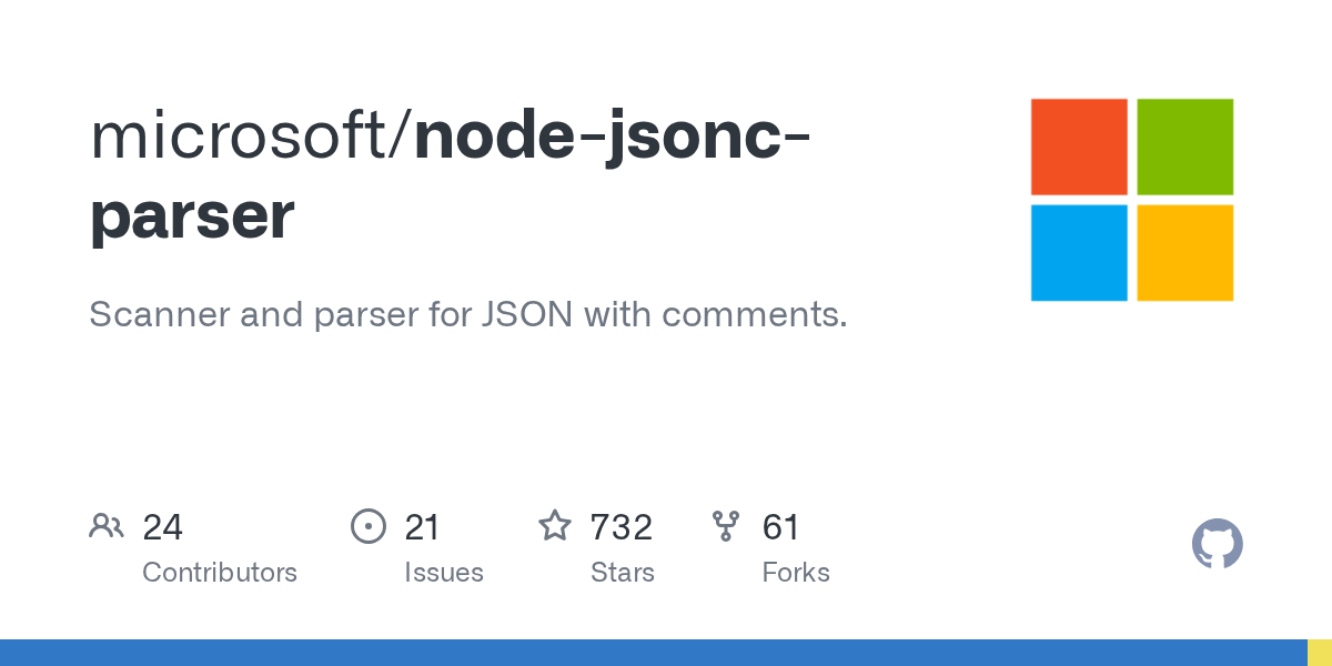 jsoncとは、コメント付きの JSON のスキャナーとパーサーです。ほかにYAMLやJSON5でもコメントがかけますが、MSのjsoncにしました。