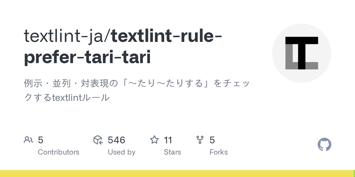 今、書いてる技術書のベースにしてるルール集。スペース調整系が足りない “textlint-ja/textlint-rule-preset-ja-technical-writing: 技術文書向けのtextlintルールプリセッ…” https://t.co/x4BNKjtY1R